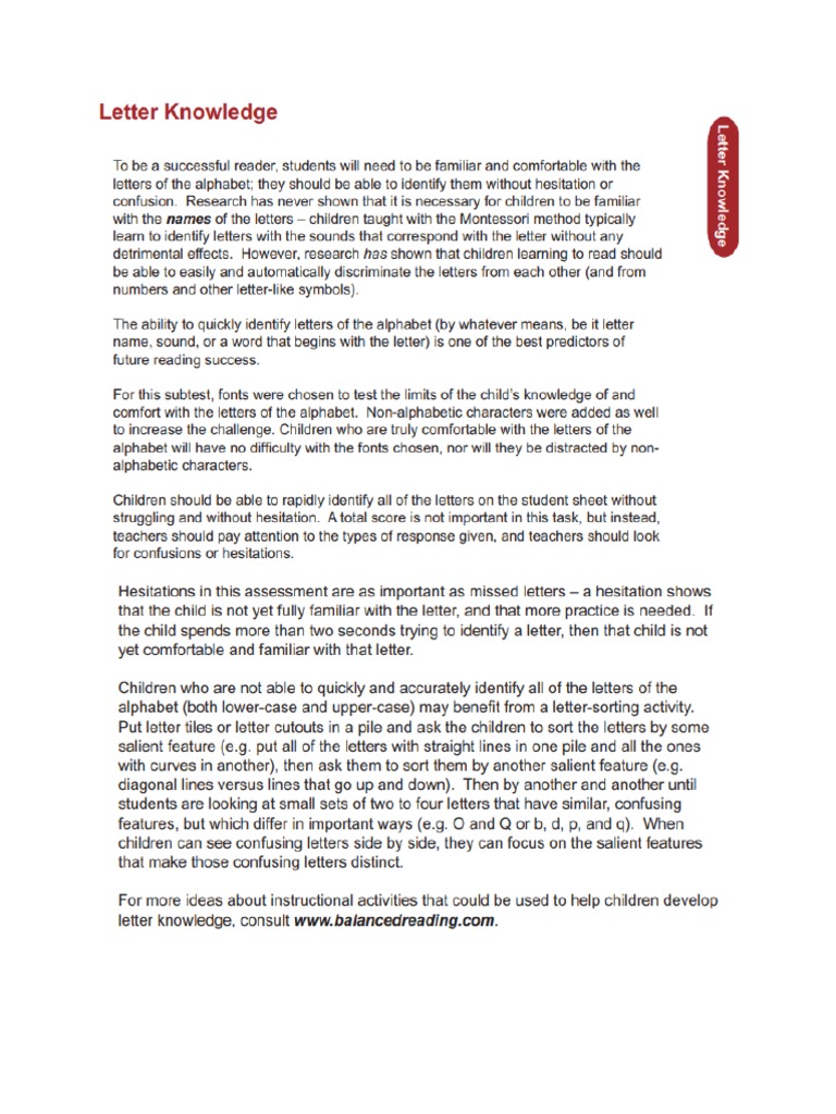 Alphabet Knowledge Assessment / For letter sounds practice and assessment, i place a page on the cookie. . ©lakeshore www.lakeshorelearning.com response response response. Additional ideas for assessment are included in the reading . Letter sorts are a great way to assess not only letter knowledge . Competent readers and writers can:. This timed screener will assess how well .